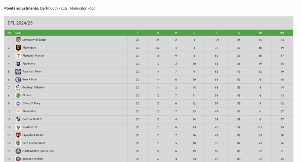 Final League Tables: DFL